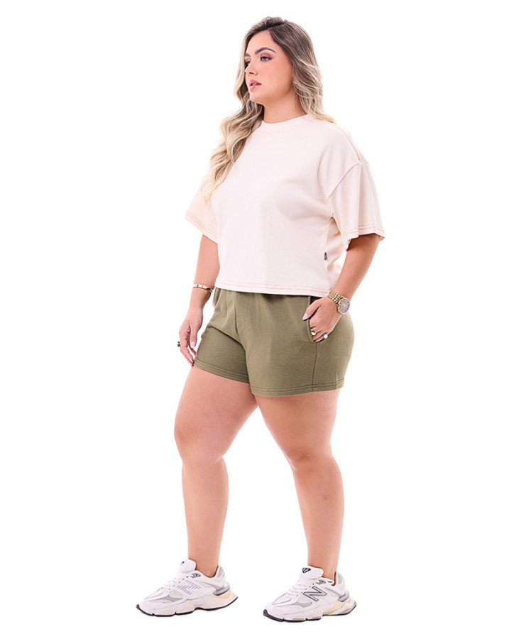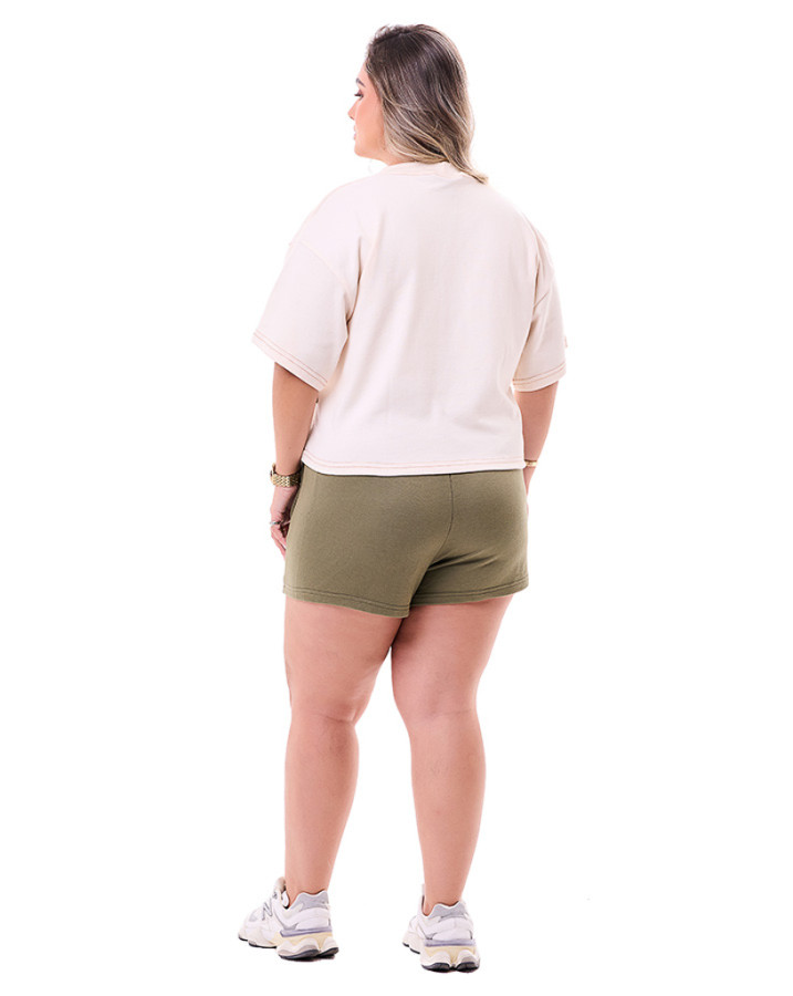 Camiseta Oversized Feminina Boxy Shoulder Line Knulu: Conforto e estilo em uma peça versátil. Feita em 50% algodão e 50% poliéster de fio penteado 30.1, seu tecido encorpado proporciona um toque macio e um caimento perfeito. Com modelagem oversized boxy e costuras contrastantes em branco, oferece um visual moderno e despojado.
