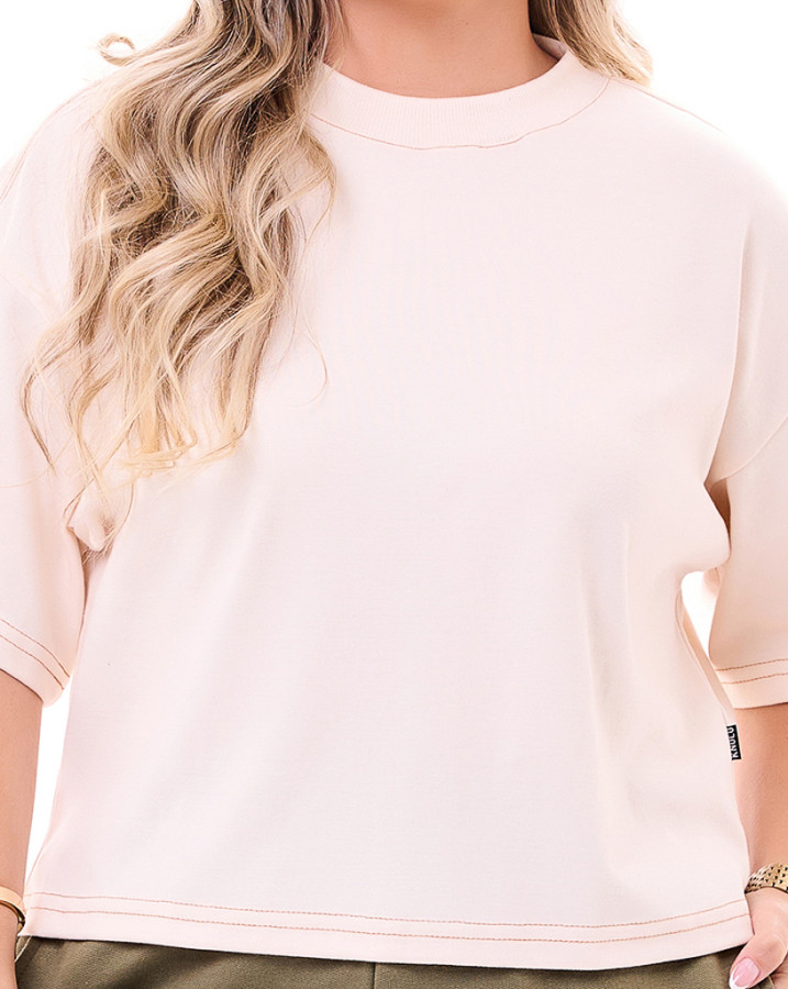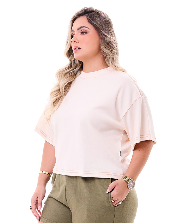 Perfeita para compor looks casuais e modernos, pode ser combinada com peças de cintura alta ou sobreposições. Adicione ao seu guarda-roupa e experimente a diferença que um design exclusivo faz no seu visual. Com a Camiseta Oversized Feminina Boxy Shoulder Line Knulu, vestir-se bem é uma experiência única.