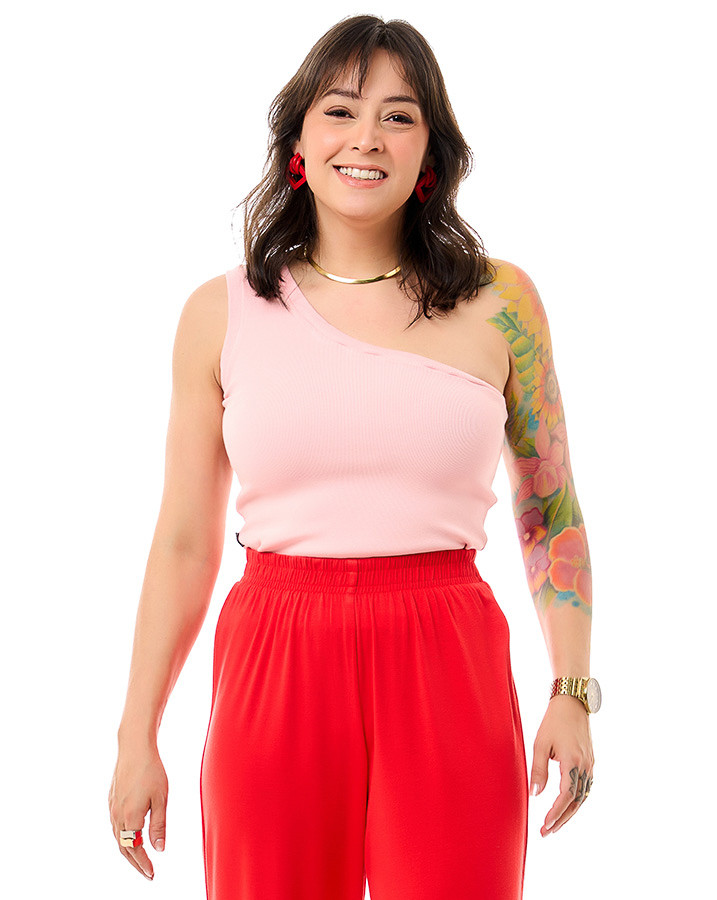 Regata Feminina Ombro Único Rosa Bebê Knulu