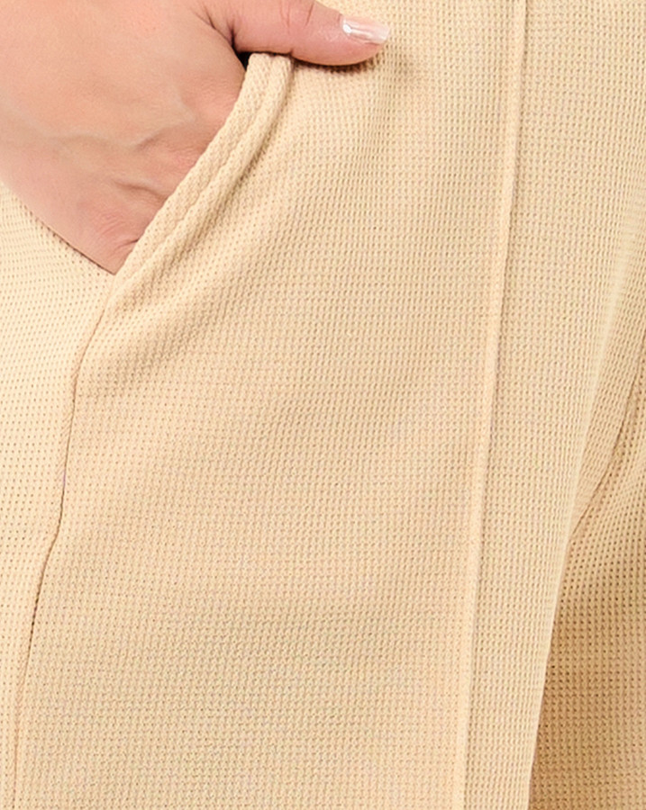 Bermuda Casual Feminina Malha Textura Square Nervura Knulu: Conforto e sofisticação em uma peça versátil. Feita em 50% algodão e 50% poliéster, seu tecido texturizado com padrão canelado oferece um toque moderno ao visual. Com modelagem reta, cintura alta e cós elástico ajustável, proporciona um caimento confortável e prático. Os bolsos laterais funcionais adicionam praticidade ao dia a dia.