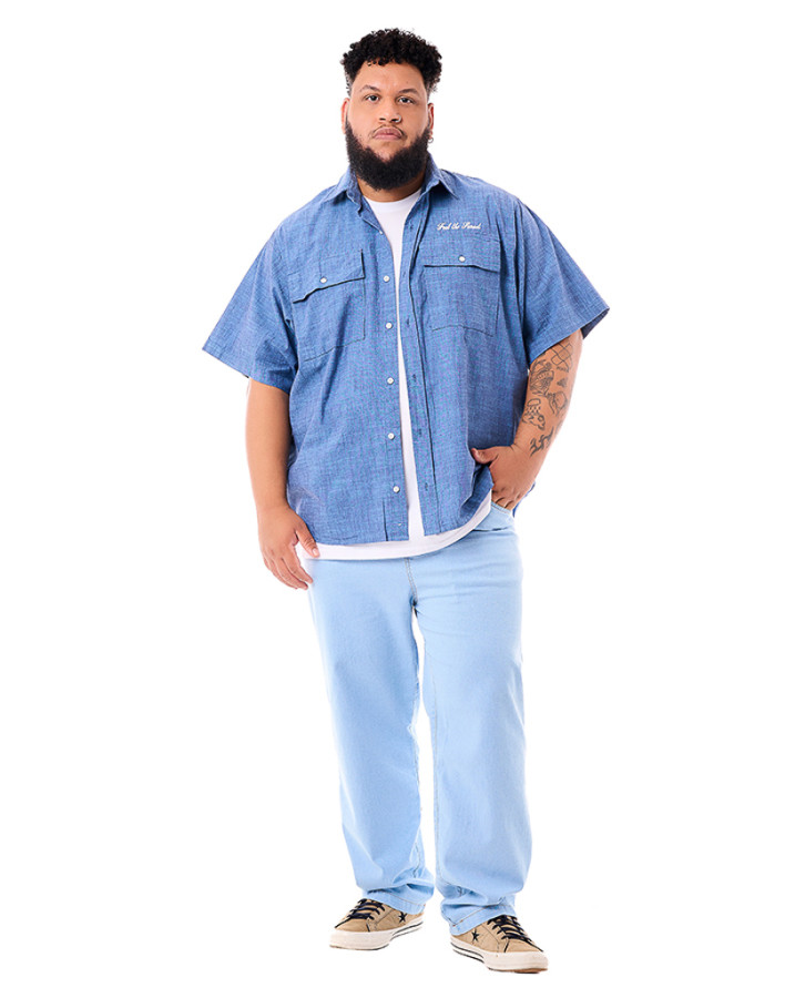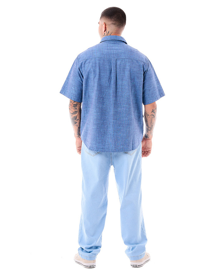Confeccionada em tricoline de toque macio e estrutura leve, proporciona conforto no uso diário, boa respirabilidade e caimento natural, ideal para os dias mais quentes. O detalhe bordado acima do bolso frontal reforça a identidade da peça e acrescenta um toque exclusivo ao visual.