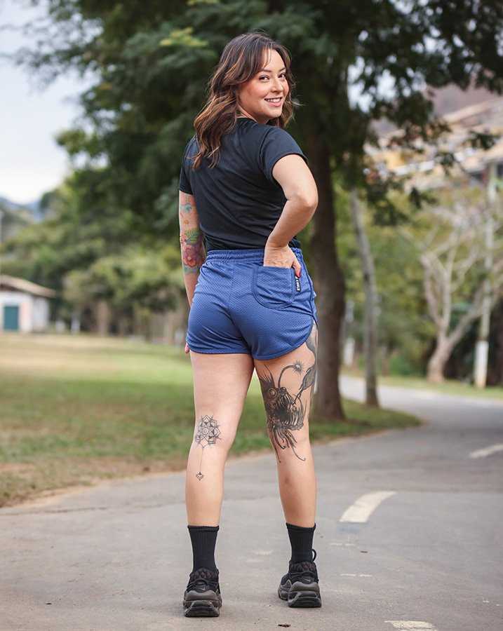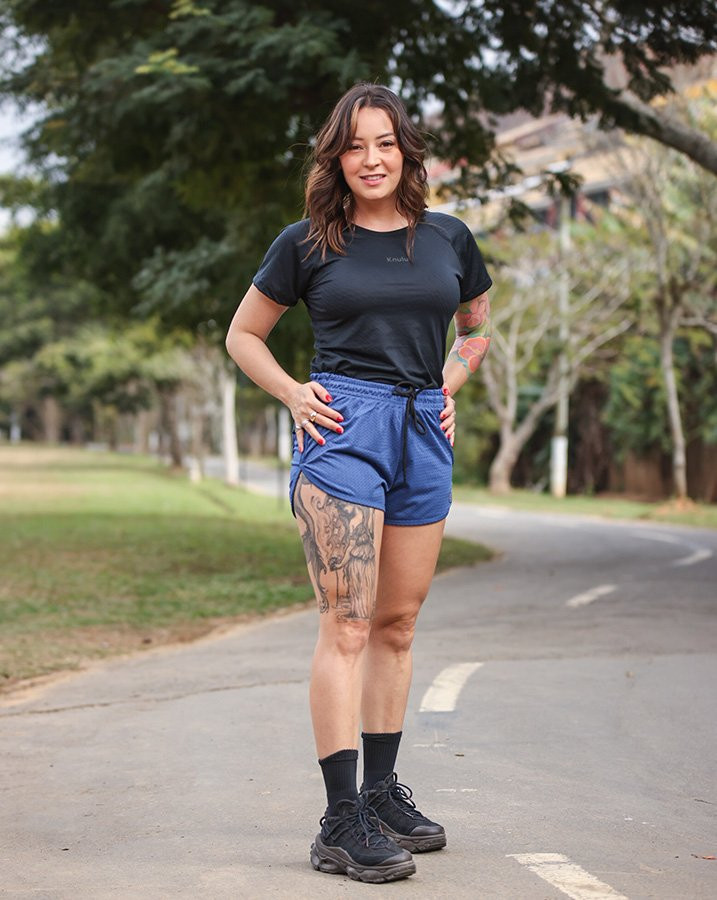 Short Feminino Dry-Fit Azul Jeans Knulu foi confeccionado com a mais alta tecnologia Dry, isso significa que o suor da pele se move por uma evaporação mais rápida, sendo assim fica livre de odores, ajudando você a ficar seca e confortável o dia inteiro.
