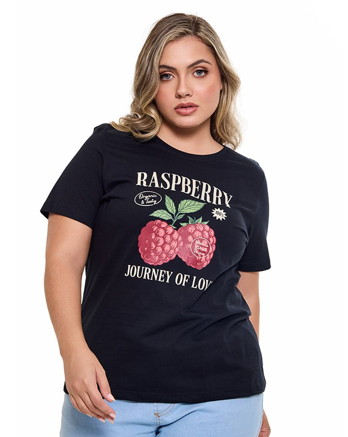 A Camiseta Feminina Raspberry Preto Knulu une conforto e irreverência com uma estampa vibrante que chama atenção. Confeccionada em malha 100% algodão, oferece toque macio e caimento tradicional que se adapta com leveza ao corpo. O fundo preto destaca o desenho das framboesas e frases em estilo retrô, como “Journey of Love”, reforçando a proposta descontraída e atual da peça para o dia a dia.