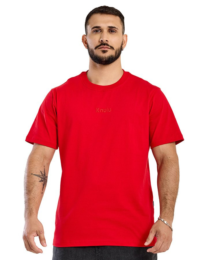 A Camiseta Classic Relief Logo Vermelho Knulu aposta na simplicidade como diferencial, com um visual limpo e moderno que valoriza os detalhes sutis. A tonalidade intensa do roxo cria uma presença marcante, enquanto o logo bordado em relevo, no mesmo tom do tecido, garante sofisticação e uniformidade estética.