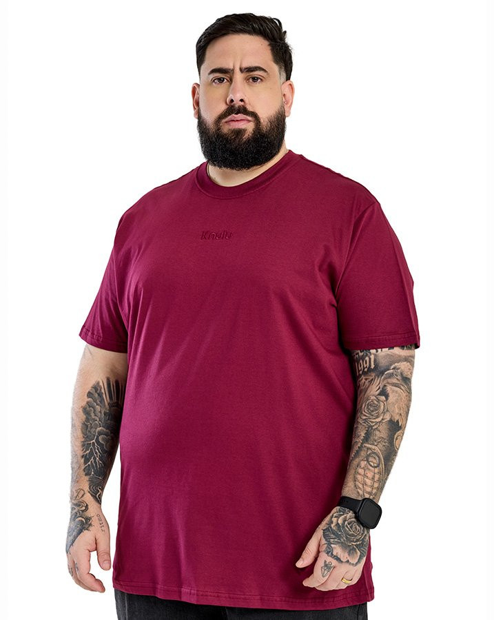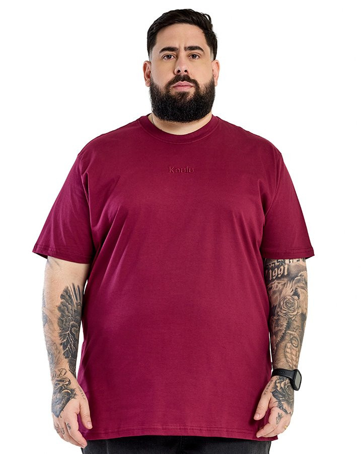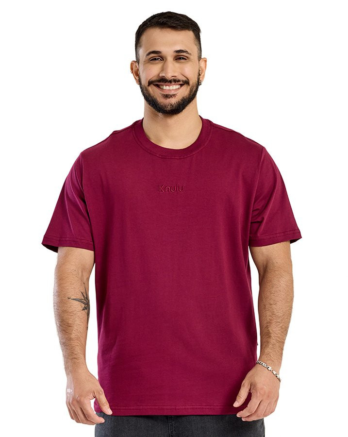 A Camiseta Classic Relief Logo Vinho Knulu aposta na simplicidade como diferencial, com um visual limpo e moderno que valoriza os detalhes sutis. A tonalidade intensa do roxo cria uma presença marcante, enquanto o logo bordado em relevo, no mesmo tom do tecido, garante sofisticação e uniformidade estética.