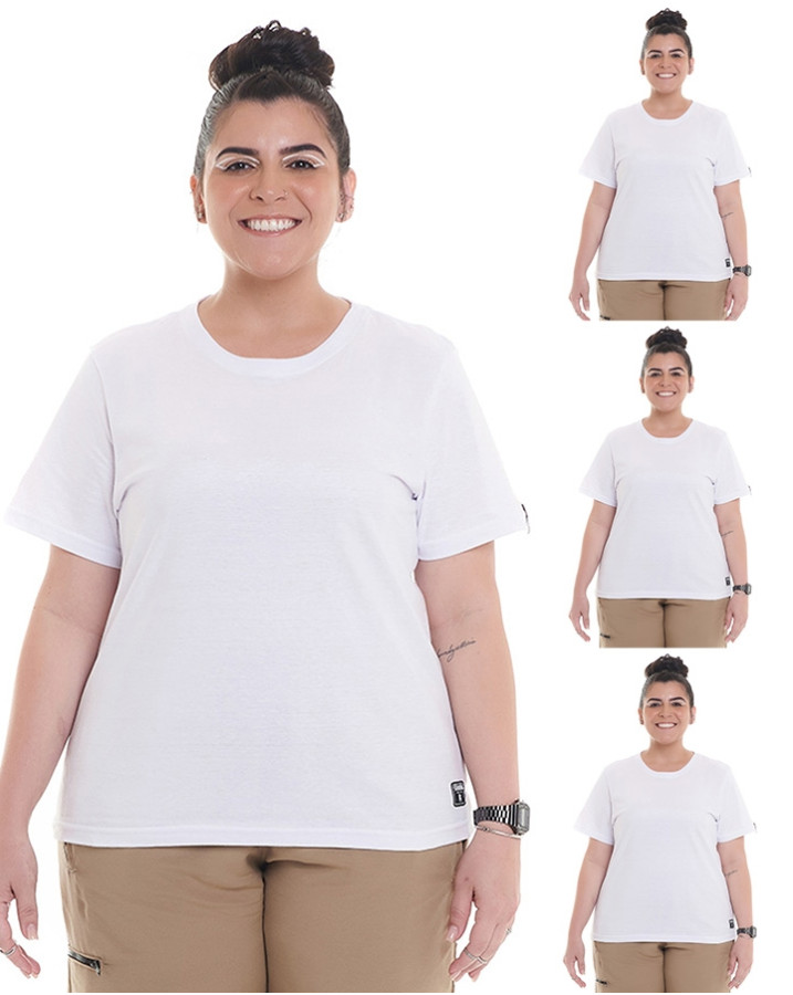 Kit com 4 Camisetas Femininas Básicas Variadas Knulu foi confeccionada com modelagem tradicional e gola careca, lisa sem estampa.