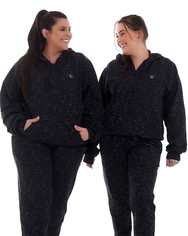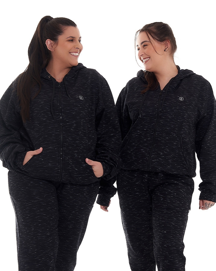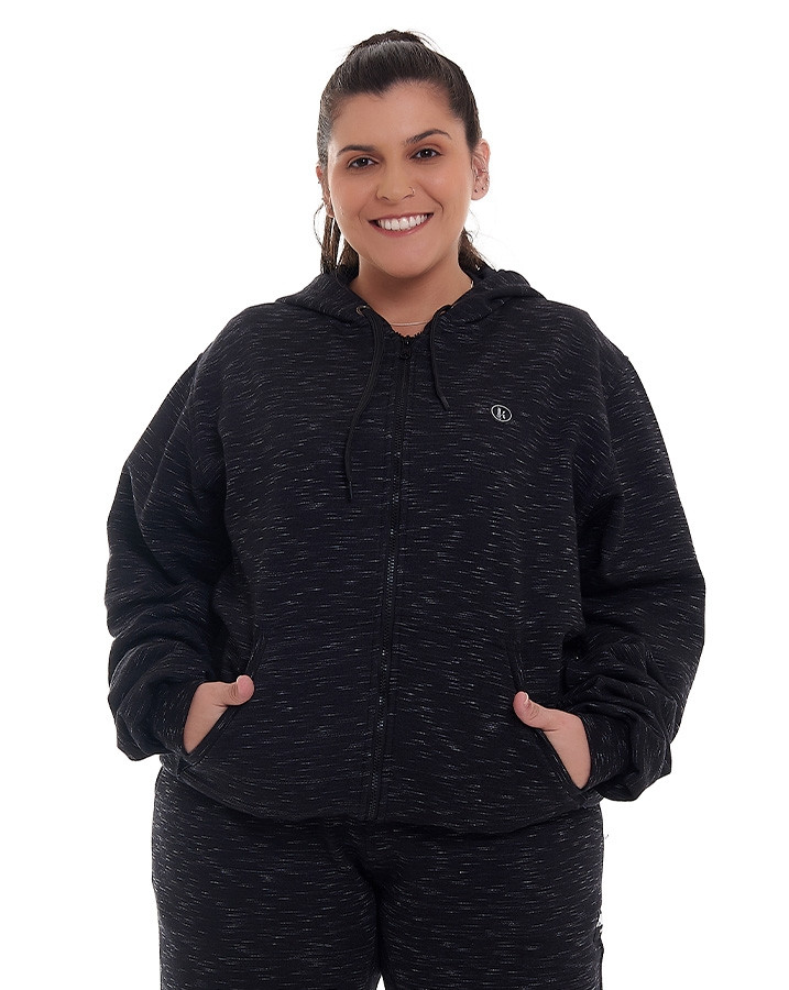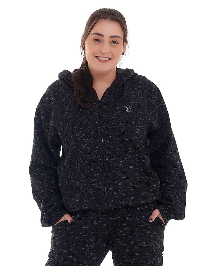 CASACO FEMININO MOLETOM CONFORT PRETO JET KNULU