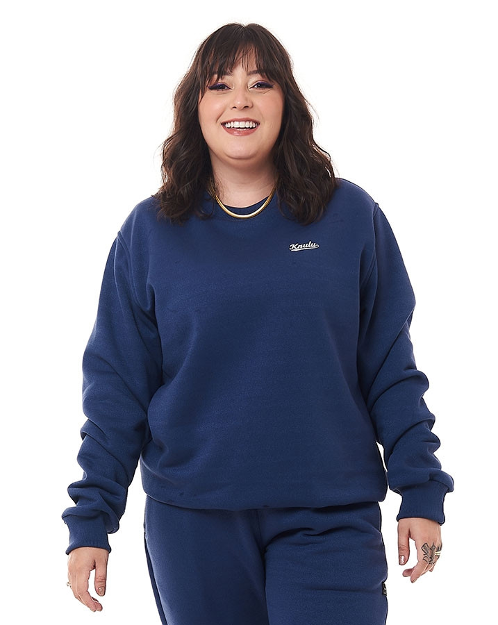A Blusa Moletom Feminina Intensity Azul Jeans Knulu, é uma blusa clássica de inverno, um básico atemporal, com gola careca, barra e punho sanfonado!