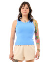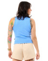 Com corte tradicional, gola careca e modelagem sem mangas, esta regata é confeccionada em tecido canelado, que adiciona uma textura elegante e um visual texturizado. A cava nadador destaca os ombros, trazendo um toque esportivo e moderno à peça. A gola redonda possui acabamento discreto, complementando o design minimalista.