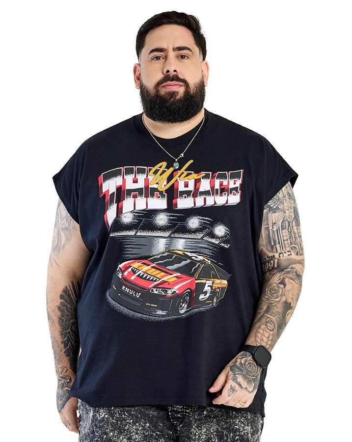 A Regata Machão Oversized The Race Knulu combina modelagem ampla com um visual inspirado no universo automobilístico. Confeccionada em tecido encorpado, de estrutura firme e toque macio, entrega durabilidade e uma aparência robusta que mantém o caimento durante o uso.