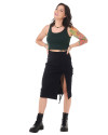 O elástico na cintura proporciona um ajuste prático e confortável, garantindo que a saia se adapte perfeitamente às suas curvas de forma natural. O tecido com pequena elasticidade oferece liberdade de movimento, permitindo que você se sinta à vontade em qualquer ocasião.