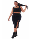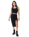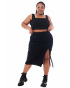 O grande diferencial da Saia Midi Canelada Regulagem é a fenda com regulagem na perna esquerda. Essa característica inovadora dá a você o poder de escolher a altura desejada para a fenda, proporcionando versatilidade ao seu look. Seja para um evento mais formal ou uma ocasião descontraída, adapte a saia conforme a atmosfera do momento.